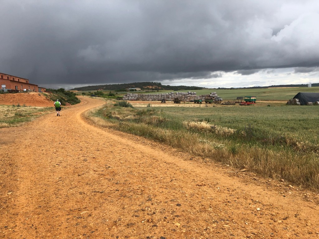 It was mostly a dirt/stone path today, through some lovely countryside. The storm kept being to the north of us, but we heard some rumbles of thunder.