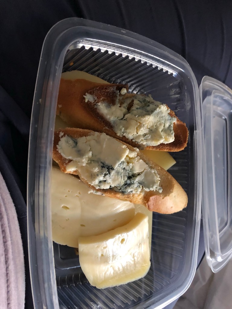 And then, the Janets arrived with my dinner. Bread, Galician cheese, a torta de Santiago, and promises to return in the morning with medicine, an N-95 mask, and bottles of water. (I told them I’m drinking tap water, and they had twin horrified expressions.)