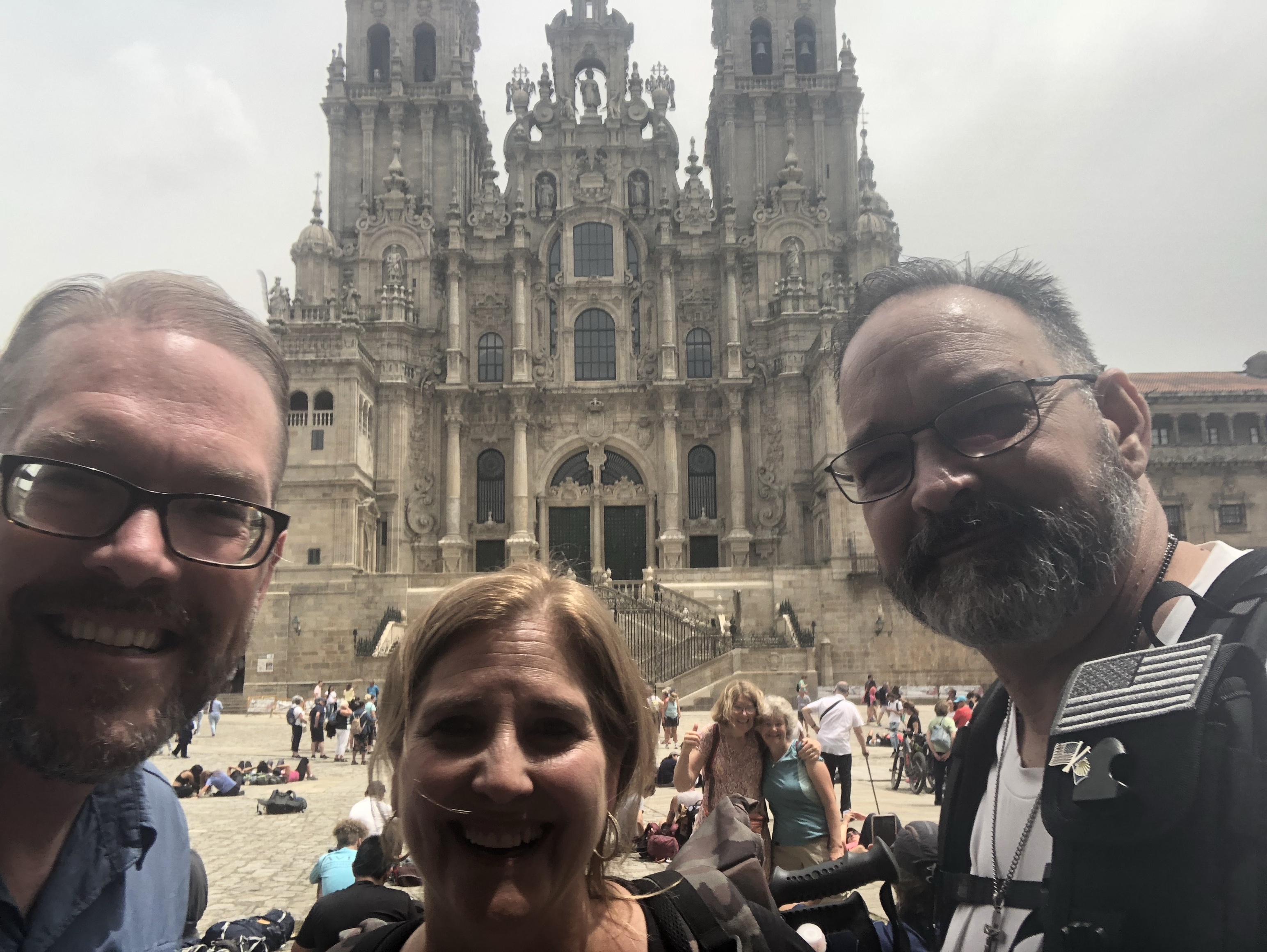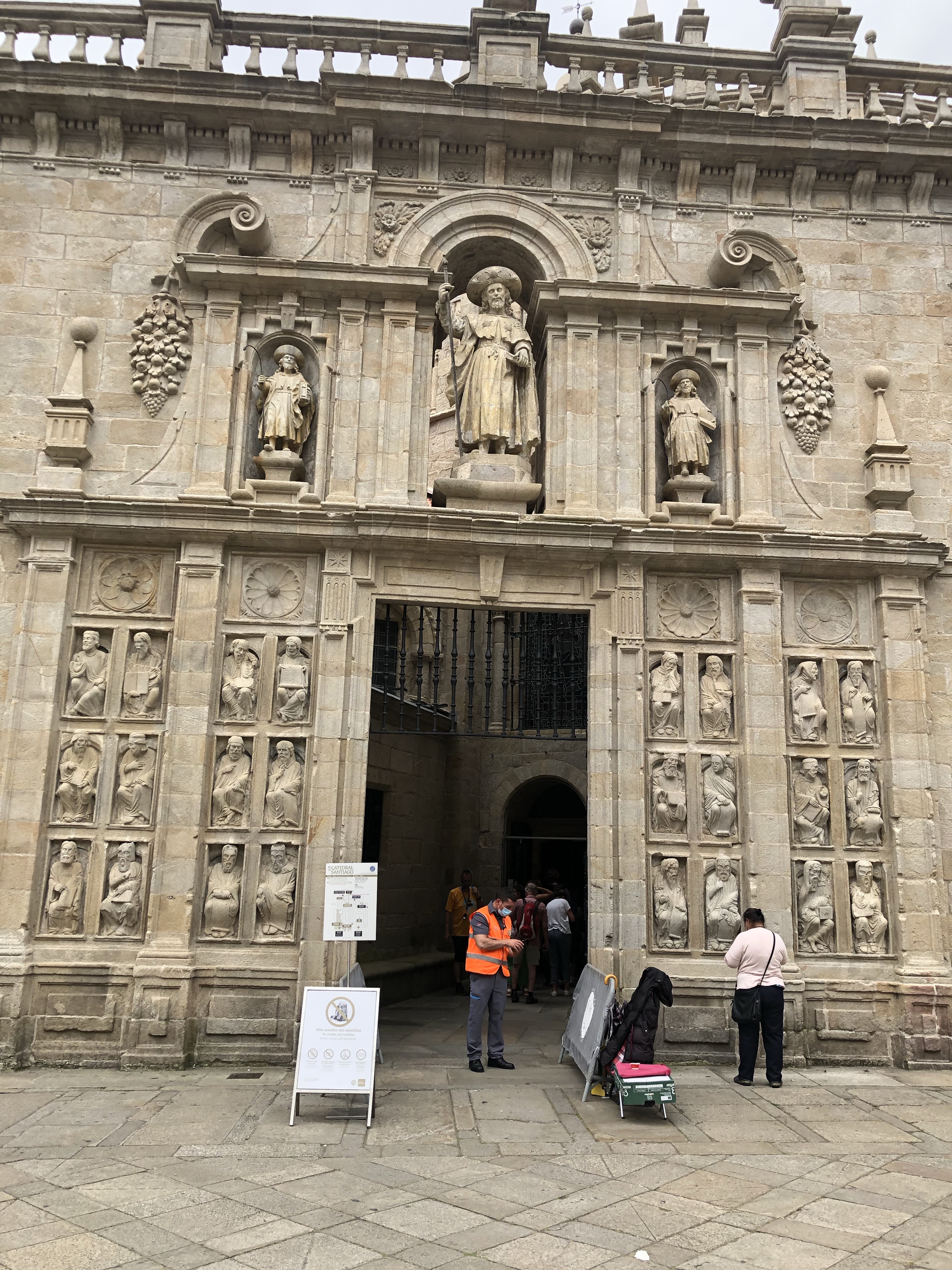 The botafumeiro is a fairly large, fairly heavy incense censer that swings from one side of the cathedral to the other at full speed. You might have seen videos of it on YouTube, and it swung in The Way. It’s somewhat rare for it to happen; it means somebody (or somebodies) ponied up the $450-500 in advance for it to happen. Spoiler alert: Somebody in our Camino Family paid for this for tomorrow’s mass at 7:30 pm. I wandered back to the cathedral while Paula napped, and I could have stayed there for some day. It’s a plaza where you can see joyful reunions and celebrations every couple minutes. I ran into Henry and Yvette from Miami; they arrived today and we running through the same emotions I did yesterday. It was great to see them. I also saw Patricia from Madrid, who had just graduated from college and was “burned up” and went on Camino. She always pointed out the best ice cream places.