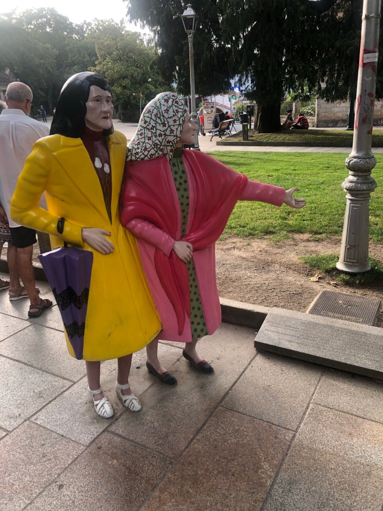 Before dinner, Paula and I walked some more. We weren’t the only ones. It seemed like the entire city was out for a stroll; I love this walking culture, to see people and be seen in the multiple parks and plazas. Oh yeah, and eat ice cream. We also saw the sculpture The Two Marias of Santiago de Compostela. Story is here in case you’re interested: https://andaspain.com/blog/two-marias/